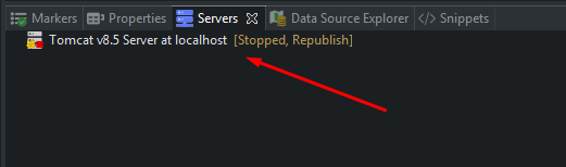 Dentro de la sección «Servers» aparecerá el servidor Tomcat 8.5 cuyo estado inicial es «Stopped»