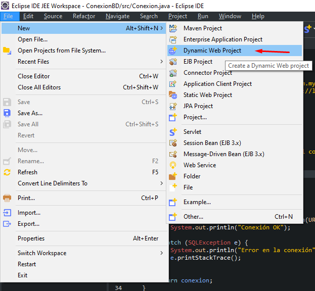 Aparecerá una ventana llamada «New Dynamic Web Project».