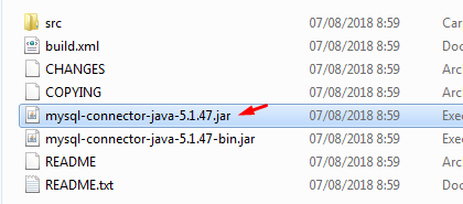 Luego de descargar el conector MySQL-Java deberán descomprimir el archivo. Dentro de la carpeta descomprimida habrá un archivo Jar llamado «mysql-connector-java-5.1.47.jar»