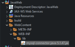 Puede que no encuentren la carpeta WebContent. En ese caso, lo más seguro es que tengan la estructura de directorios siguiente: src/main/webapp y dentro encuentren a WEB-INF/lib siendo la ruta completa: src/main/webapp/web-inf/lib