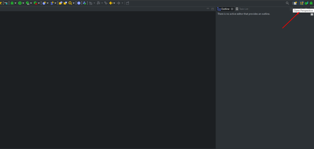 Otra manera para abrir la ventana de Perspectivas de eclipse es haciendo clic en el botón «Open perspective» situado en la esquina superior derecha del IDE