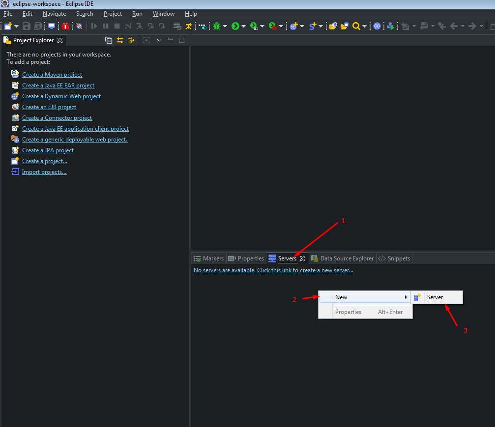 - En un área vacía hacemos clic derecho, elegirmos New / Server