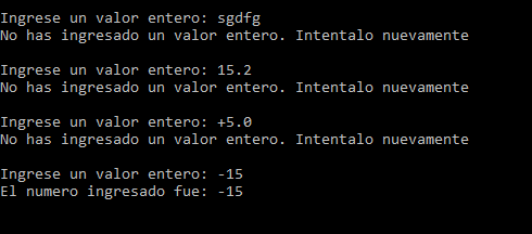 En este programa se valida que el usuario ingrese un número entero ya sea con signo o sin él. No se admiten decimales, espacios en blanco o caracteres extraños.